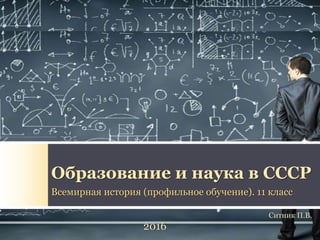 Документ охватывает развитие образования и науки в СССР с 1945 по 1991 год, подчеркивая ключевые реформы и достижения в этих сферах. В нем рассматривается влияние идеологии на образование и науку, а также упоминаются важные фигуры, такие как Андрей Сахаров, и значимые научные проекты, включая атомный проект. Несмотря на количественный рост в образовании, качество подготовки студентов оставалось проблемным, что приводило к кризисам в системе.