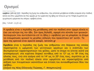 λειτουργιών που συντελούνται επί τη ήβης (= εφηβεία) για να μπορέσει το άτομο