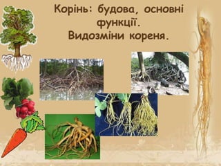 Будова кореня. Види кореневих систем. Видозміни кореня.