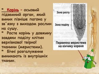 корінь росте в довжину. Це