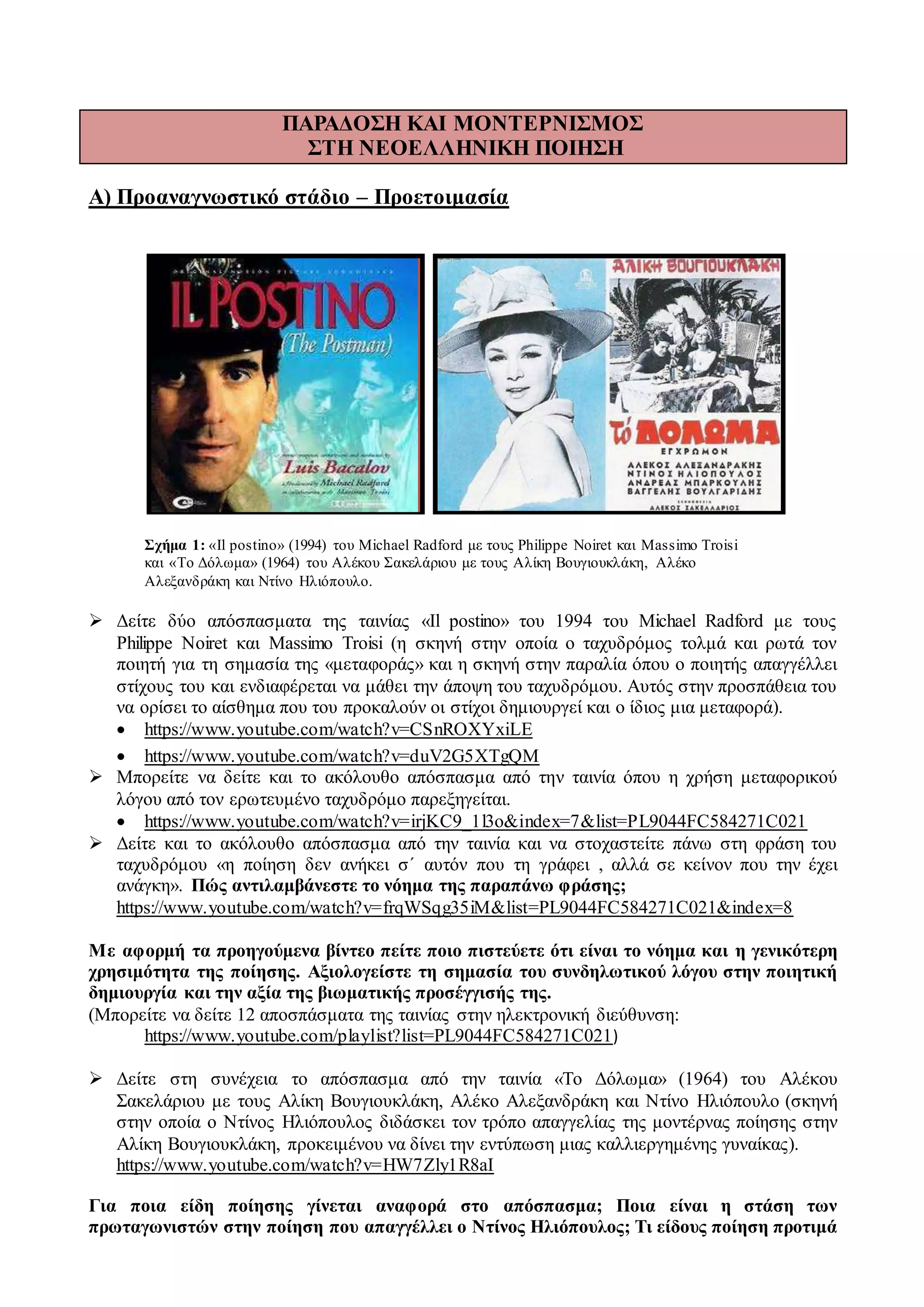 Σχήμα 1: «Il postino» (1994) του Michael Radford με τους Philippe Noiret και Massimo Troisi