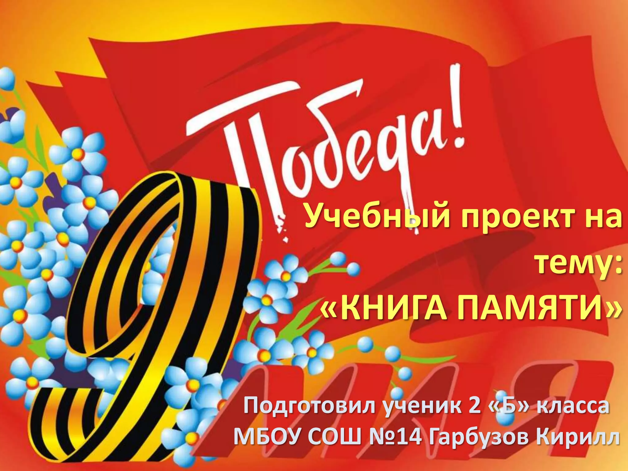 Учебный проект на тему 'книга памяти' описывает исследование истории семьи, связанной с Великой Отечественной войной, через создание семейного архива. Ученик рассказывает о подвиге своих прадедов, которые служили в армии, и получает информацию из архивных источников. В заключении подчеркивается важность сохранения памяти о вкладе предков в победу и намерение продолжить работу над 'книгой памяти'.