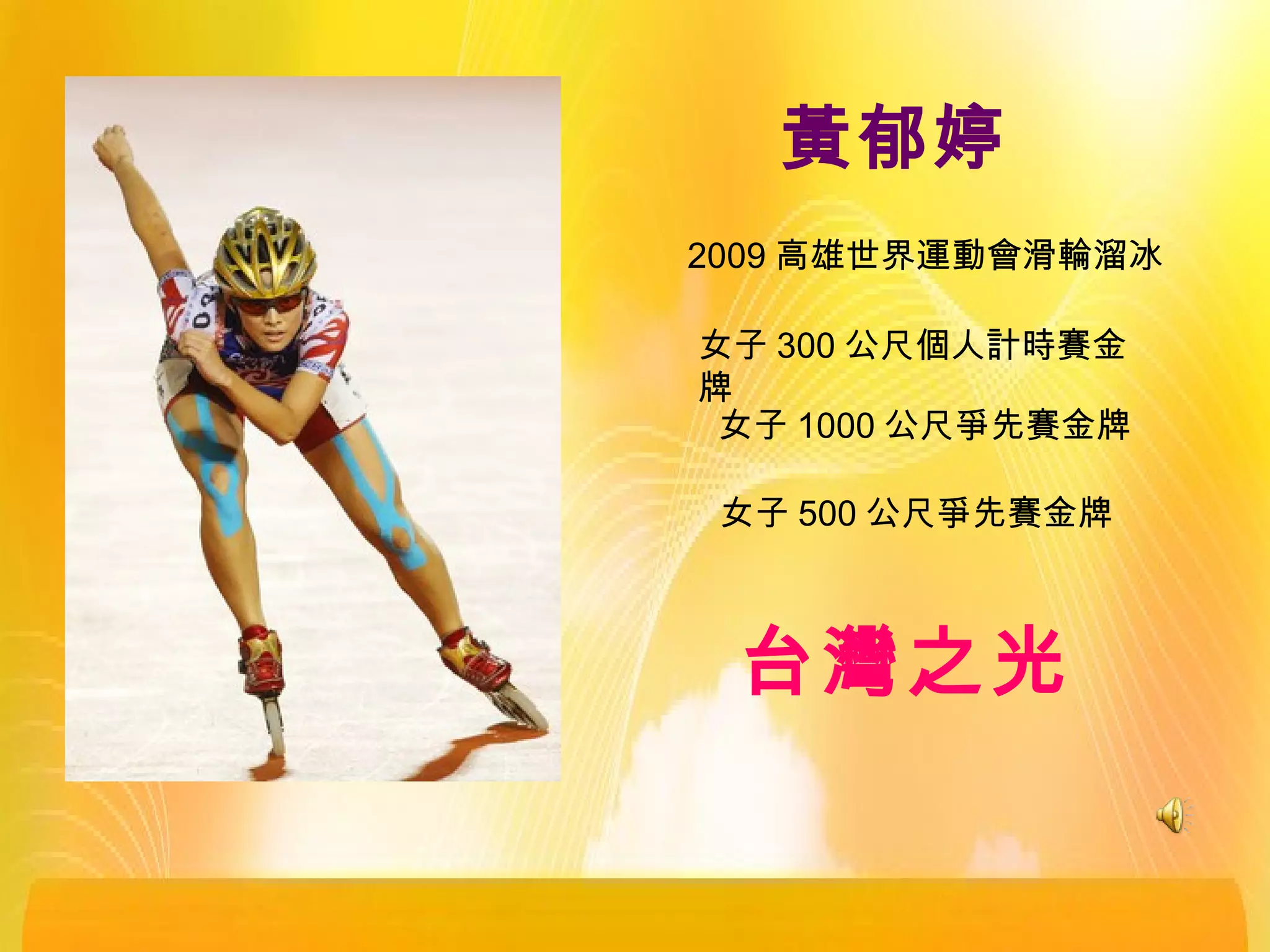 文档详细记录了台湾运动员在滑轮溜冰和田径比赛中的优异表现,包括金牌、银牌和铜牌的获得情况。特别提到英蓉在比赛中受伤后的坚强表现及众人的关心与支持。同时,呼吁社会对英蓉的医疗费用给予援助,期待她的未来发展。