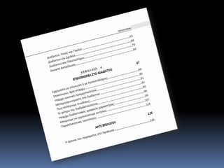 Αυτές τις ημέρες κυκλοφορεί το βιβλίο μου ΤΑ ΔΙΑΔΙΚΤΥΑ ΜΑΣ από τις Εκδόσεις Δίσιγμα. Πρόκειται για μία αναγνωριστική πορεία στην πραγματικότητα του διαδικτύου που δεν επιχειρεί να μεταδώσει γνώσεις αλλά να ανακινήσει προβληματισμούς. Ελπίζω να το βρείτε ενδιαφέρον.