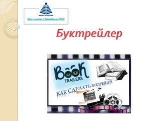 Документ описывает буктрейлеры как видеорекламу книг, используя методы, схожие с рекламой фильмов, с целью привлечения интереса читателя. В нем рассматриваются разные жанры и стили буктрейлеров, а также основные этапы их создания, включая выбор книги, написание сценария и монтаж видео. Приведены ссылки на примеры буктрейлеров и программы для их создания.
