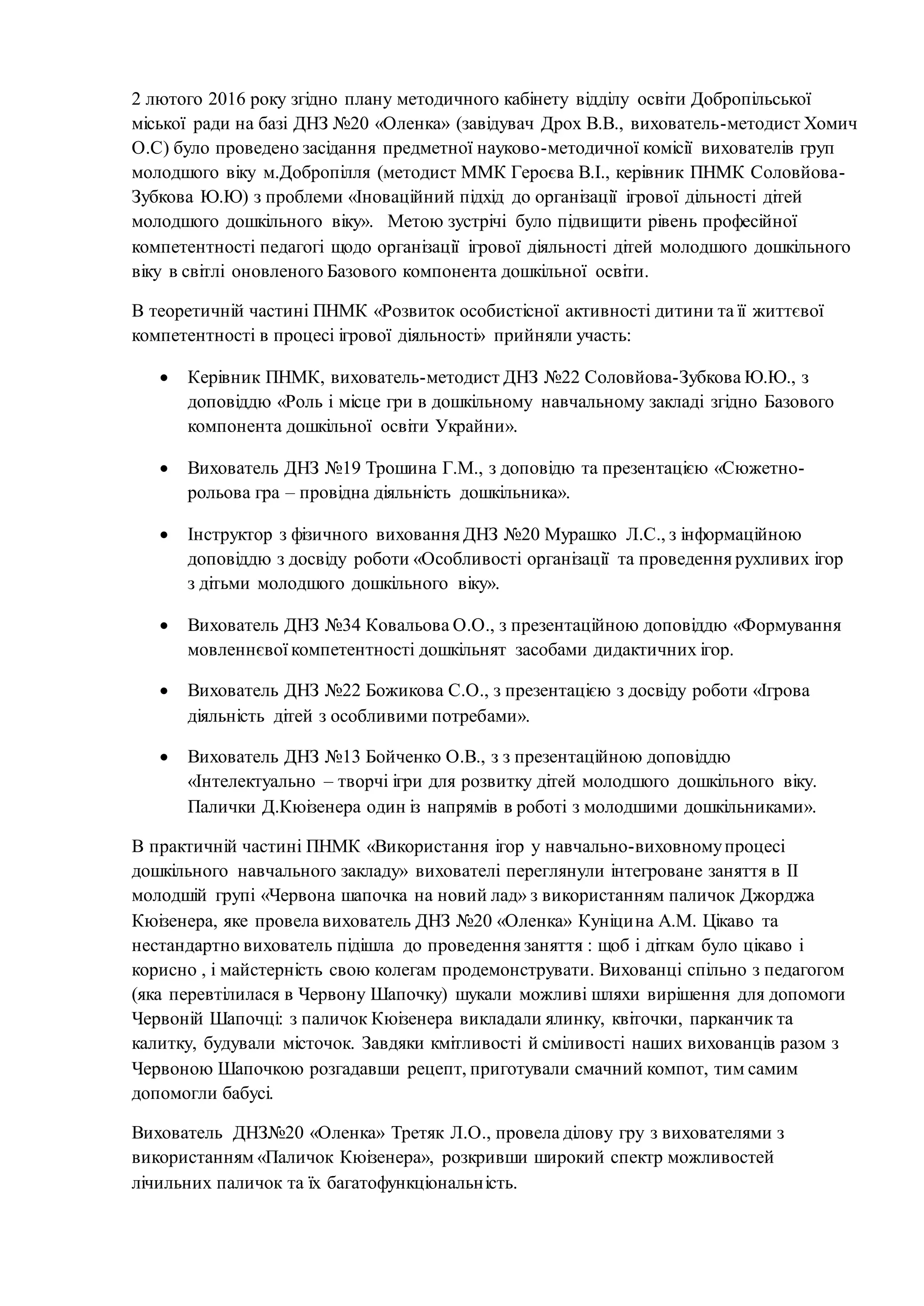 2 лютого 2016року згідно плану методичного кабінету відділу освіти Добропільської