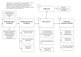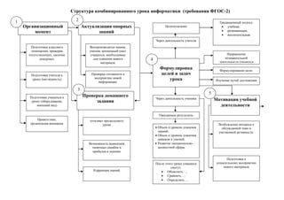 Документ описывает структуру комбинированного урока информатики в соответствии с требованиями ФГОС-2, включая организационные моменты, цели и задачи урока. Он акцентирует внимание на подготовке учителя и ученика, а также на методах активизации познавательной деятельности и мотивации учащихся. В конце урока обращается внимание на рефлексию, закрепление изученного материала и домашнее задание.