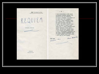 Документ содержит обширную биографию Анны Ахматовой, одного из крупнейших русских поэтов XX века, охватывающую её жизнь, литературное творчество и влияние на русскую поэзию. Прилагаются ссылки на литературу и статьи, посвящённые её работам и терминологии, связанной с её наследием. Кроме того, описываются основные этапы её жизни, включая личные трагедии, политические репрессии и последующее признание её таланта.