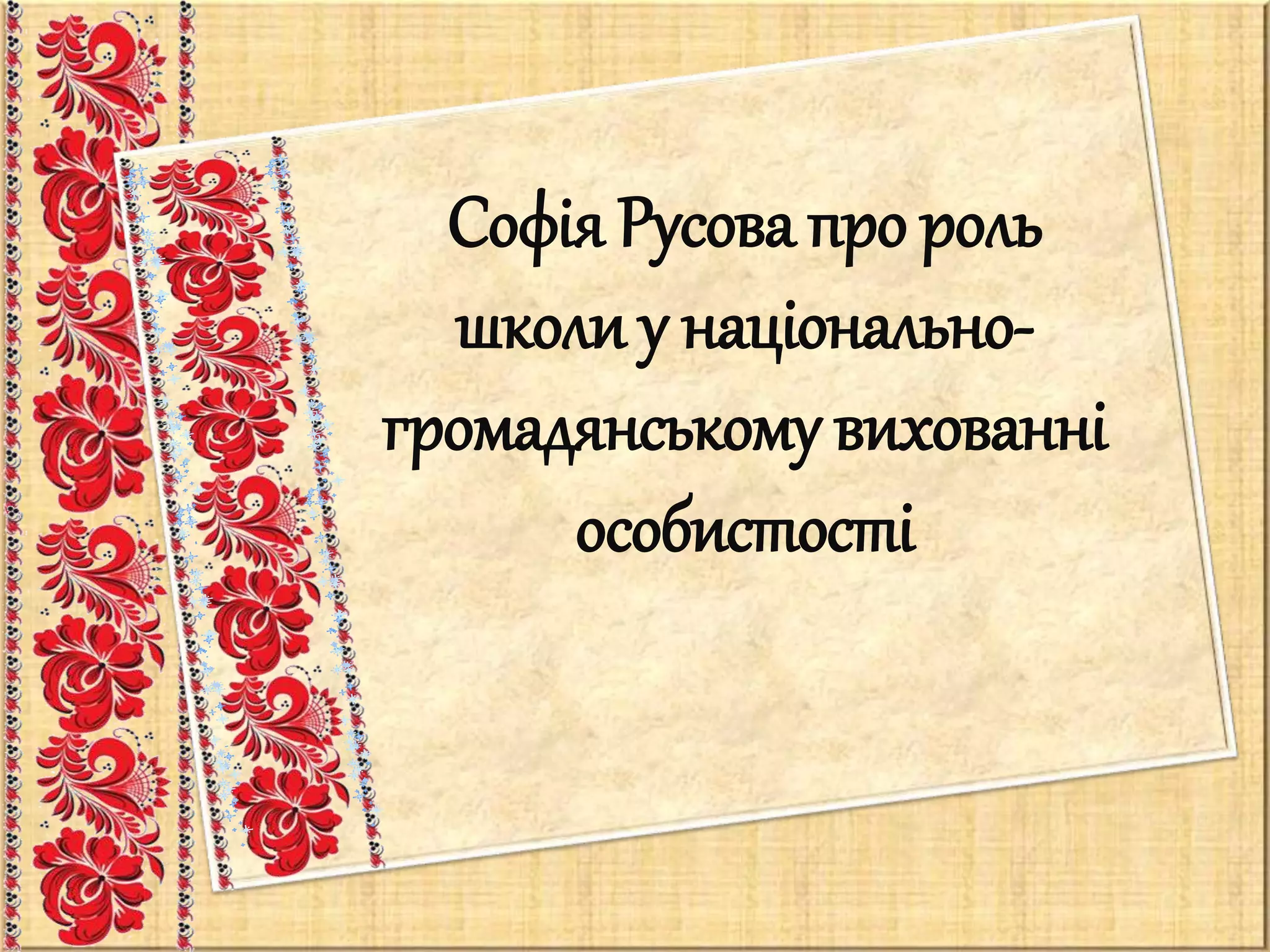 рідним вишиванням, хай сама школа нагадує колишні українські