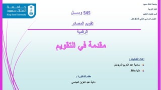 الوثيقة تتناول مواضيع تتعلق بالتقويم والتقييم في التعلم، حيث تشرح الفرق بينهما وتسرد أنواع التقويم المختلفة التي تشمل التقويم القبلي والتكويني والنهائي. كما توضح أهمية عملية التقويم في تحسين جودة التعليم ودعم اتخاذ القرارات التعليمية الفعالة. تركز الوثيقة على كيفية استخدام التقويم لجمع البيانات وتحليلها لتحقيق الأهداف التعليمية وتطوير العملية التعليمية.