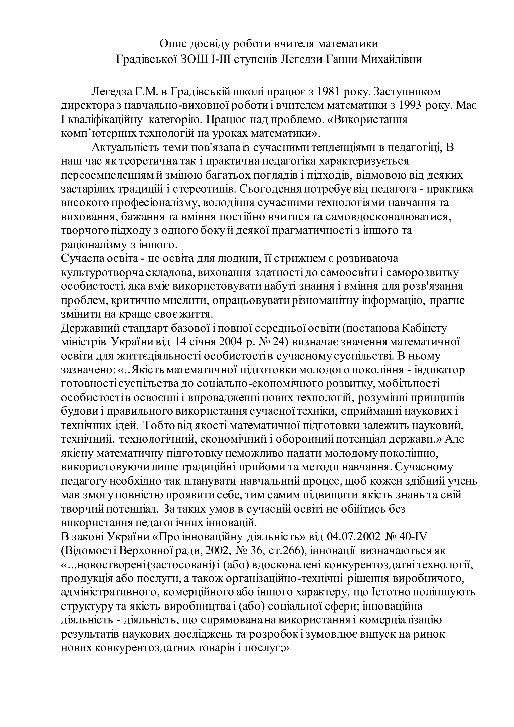 Градівської ЗОШ І-ІІІ ступенів Легедзи Ганни Михайлівни