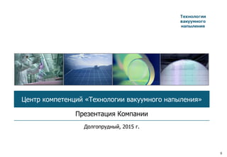 Центр компетенций "технологии вакуумного напыления" (ЦК ТВН) разрабатывает и применяет передовые вакуумные технологии для создания тонкопленочных структур, включая аккумуляторы с твердотельным электролитом и керамические термобарьерные покрытия для турбин. В 2015 году были представлены проекты по разработке этих технологий с акцентом на сотрудничество с инновационными центрами и ВУЗами, а также получены предварительные соглашения на создание совместной лаборатории. Основная проблема заключается в высоких затратах на технологии напыления, что требует поиска более экономичных решений.