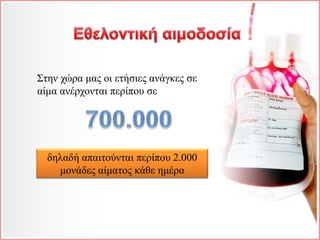 ευρύτερο κοινό, με τελικό στόχο να καταστήσει τη χώρα μας αυτάρκη σε αίμα και