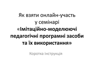 семінарі «Імітаційно-моделюючі педагогічні програмні засоби та їх використання» Коротка інструкція