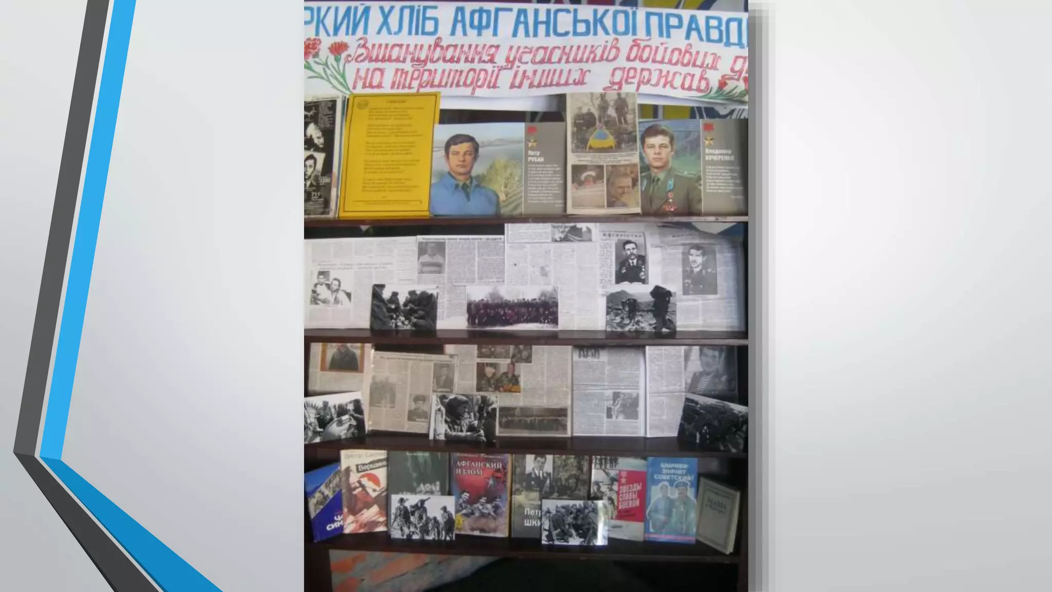 В рамках благодійно-патріотичної акції на підтримку воїнів АТО та напередодні 27-ої річниці з дня виводу радянських військ з Афганістану, організованою ГО «Другий фронт» керівник Наталія Пилипенко, працівники центральної районної бібліотеки ім. Л.Новиченка представили виставку-інсталяцію «Гіркий хліб афганської правди»