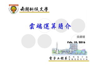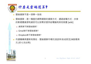 雲端運算是⼀種模式,允許無處不在、便捷、依個體需求地使用網路存