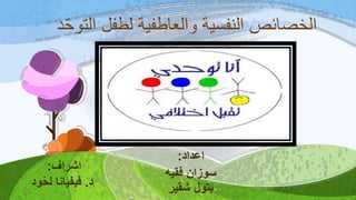يتناول الوثيقة الخصائص النفسية والعاطفية للأطفال الذين يعانون من التوحد، مشيرًا إلى سلوكياتهم الفريدة والتحديات التي يواجهونها في التواصل والتفاعل الاجتماعي. كما تسلط الضوء على أهمية الدعم الأسري والعلاجات التربوية والنفسية في مساعدة الأطفال التوحديين على تطوير مهاراتهم والتكيف مع بيئاتهم. يشير النص أيضًا إلى الاضطرابات المرتبطة بالتوحد مثل الاكتئاب والقلق وضرورة الوعي بهذه التحديات لتوفير الدعم المناسب.