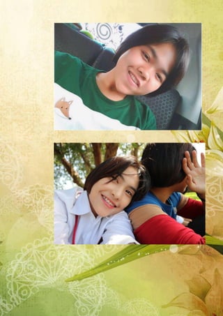 ) เล่มนี้ ดิฉันได้จัดทาขึ้นเพื่อเป็น ตัวแทนนาเสนอข้อมูล ประวัติส่วนตัว ผลทางการศึกษา ความรู้ ความสามารถ ทักษะ รวมถึงกิจกรรมต่าง ๆ ที่ดิฉันได้เข้าร่วม โดยแฟ้ม สะสมผมงานเล่มนี้ ประกอบด้วยเอกสารเกี่ยวกับประวัติส่วนตัว ประวัติ ทางการศึกษา ผลงานที่ได้รับที่ทาให้ดิฉันเกิดความภาคภูมิใจ เช่น รางวัลรองชนะเลิศ อันดับ 1 ประเภท ลีดเดอร์ ในกิจกรรมการแข่งขัน กีฬาสี ฯลฯ เป็นต้น รวมทั้งรูปภาพการทากิจกรรมต่างๆ มากมาย เช่น กิจกรรมวันยาเสพติด กิจกรรมงานรา 4 ภาค ของวิชานาฏศิลป์ เป็นต้น ดิฉันขอขอบพระคุณ คุณพ่อ คุณแม่ คุณครูอาจารย์ และเพื่อนๆ ที่ให้ความช่วยเหลือ ทั้งให้คาแนะนา รวบรวมเอกสาร หลักฐานสาคัญ ต่างๆ ข้อมูลที่เป็นประโยชน์อย่างยิ่งเพื่อจัดทาแฟ้มผลงานในครั้งนี้ และ เพื่อการศึกษาต่อในสถาบันอุดมศึกษา (นางสาวณัฏฐ์ฎาพร วรโชติโภคิน)