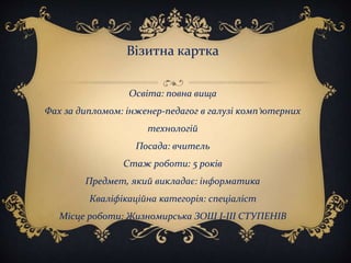 Місце роботи: Жизномирська ЗОШ І-ІІІ СТУПЕНІВ