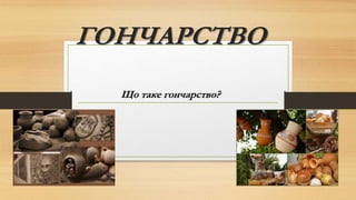 Гонча́рство— виготовлення керамічних виробів з гончарної глини: посуду, кахлів,
