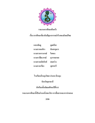 ชื่อโครงราง: การศึกษาเกี่ยวกับปญหาการหยารางของสังคมไทย สาระการเรียนรู: วิชาการงานอาชีพและเทคโนโลยี ชื่อผูคนควา นายวธันยู