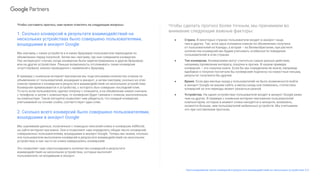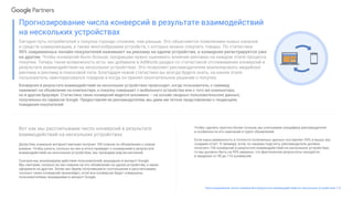 Документ описывает, как прогнозировать число конверсий при взаимодействиях на нескольких устройствах, подчеркивая сложность пути покупателя в современных условиях. Новая функция в AdWords позволяет рекламодателям отслеживать конверсии и анализировать поведение пользователей, что способствует повышению точности прогнозов. Для более достоверных результатов учитываются такие факторы, как страна, тип конверсии, время и устройства.