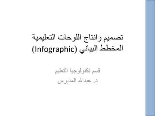 يتناول هذا المستند تصميم وإنتاج المخططات البيانية (الإنفوجرافيك) كأداة تعليمية فعالة، حيث تساهم في تنظيم المعلومات وتبسيط الفهم. يتم تقديم أنواع مختلفة من المخططات مثل المخطط الزمني ومخطط الانسياب، مع تسليط الضوء على فوائد استخدامها في التعليم والذاكرة البصرية. يُبرز الوثيقة أيضًا أهمية اختيار القالب المناسب للموضوع المراد تقديمه.
