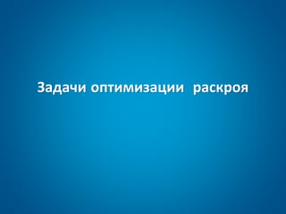 Документ посвящен задаче оптимального раскроя материала, которая включает выбор способов раскроя и определение их интенсивности. Оптимальный раскрой используется в различных отраслях, включая металлургию и легкую промышленность, и требует применения методов линейного программирования для минимизации отходов. Приведен пример решения задачи, касающейся раскроя бумажных рулонов для удовлетворения заказов нестандартных размеров.