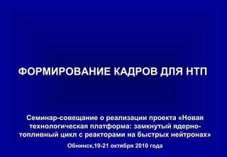 Документ предоставляет анализ текущего состояния и проблем подготовки кадров в атомной отрасли России, подчеркивая старение научных и инженерных кадров, недостаток квалифицированных специалистов и критическое состояние учебной базы. Основные выводы включают необходимость активизации рекламно-просветительской деятельности, создание интегрированных учебно-научных комплексов и подготовку специалистов по госзаказу. Также поднимаются вопросы социальной политики для улучшения условий труда и жизни специалистов.