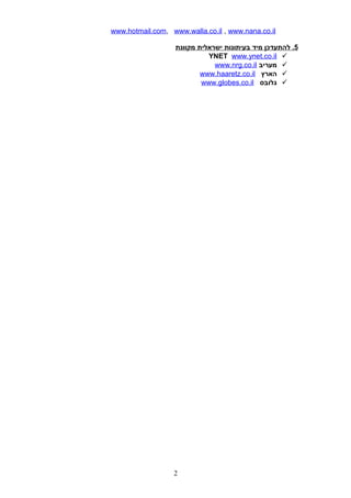 www.hotmail.com, www.walla.co.il ,www.nana.co.il