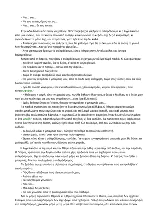 - Τα παιγνίδια όμως, ας είναι και πρωί, δεν είναι στα τζάμια; ξανάπε ο Πέτρος. Αν μαζέψεις, μαμά,