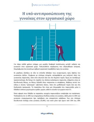 Σύμφωνα με τον Jesper Schou Hansen, από το Ευρωπαϊκό Ινστιτούτο για την Ισότητα των Φύλων: «Οι γυναίκες δεν συμμετέχουν ακόμη στην αγορά εργασίας στον ίδιο βαθμό με τους άνδρες. Εάν οι γυναίκες έχουν παρουσία στην αγορά εργασίας στον ίδιο βαθμό με τους άνδρες, τότε η οικονομία θα καταγράψει άνοδο. Κατά συνέπεια όλες οι χώρες εφόσον το επιθυμούν, μπορούν να βελτιώσουν την οικονομία τους εάν δώσουν τις ίδιες δυνατότητες σε άνδρες και γυναίκες να μετέχουν στην αγορά εργασίας»