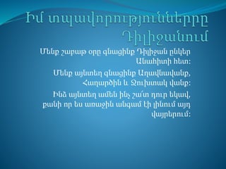 Ինձ այնտեղ ամեն ինչ շա՜տ դուր եկավ,