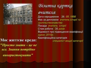 Фах за дипломомФах за дипломом вчитель історії тавчитель історії та
