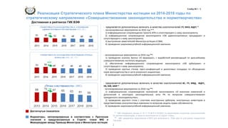 Документ содержит информацию о стратегическом плане Министерства юстиции на 2014-2018 годы, направленном на совершенствование законодательства и нормотворчества. Запланированы мероприятия на 2016 год, включая информационное сопровождение законопроектов и анализа существующих законов, а также достижения показателей по реализации плана. Указаны статистические данные о разработке законопроектов, их согласовании и выполнении требований стратегического плана.
