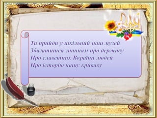 Всі вони мають значні фондові колекції, цікаві експозиції. На їх базі проводиться значна робота по залученню учнівської молоді до пошуку, вивчення та збереження історико-культурної спадщини українського народу, природи навколишньої місцевості.