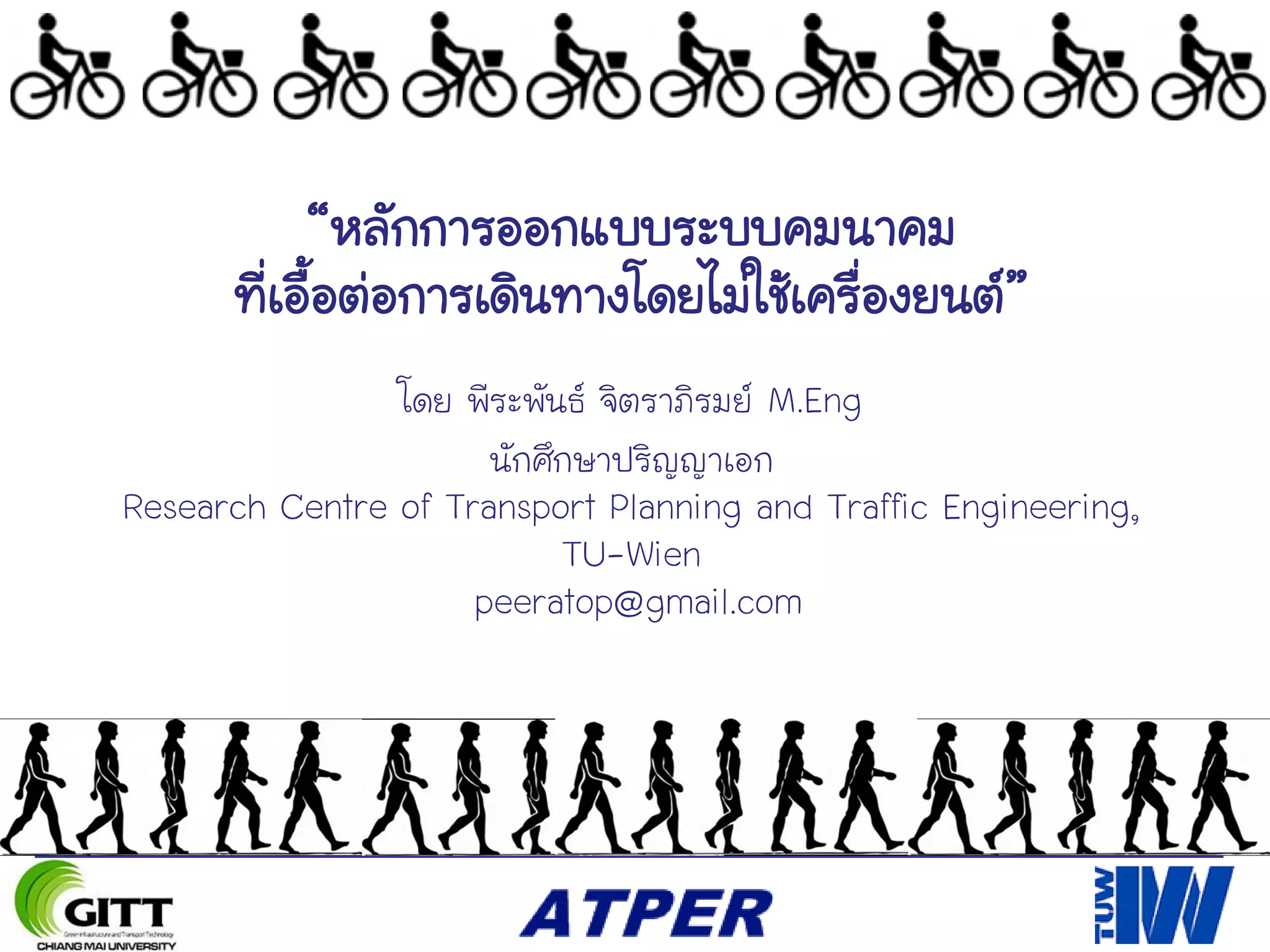 Non-motorised transport design principle. A lecture a Chiang Mai University in 2014 by Peraphan Jittrapirom ATPER.