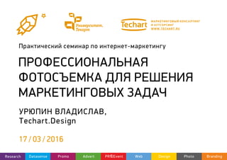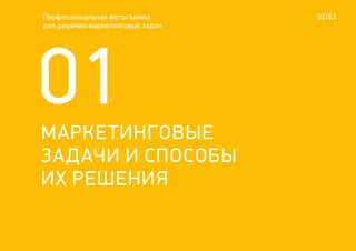 Документ описывает семинар по интернет-маркетингу и роли профессиональной фотосъемки в решении маркетинговых задач. Подчеркиваются цели, такие как увеличение объемов продаж и создание положительного имиджа компании с помощью эффективной визуализации товара. Кроме того, рассматриваются различные виды фотосъемки, подходящие для маркетинговых целей, и преимущества профессионального подхода к съемке.