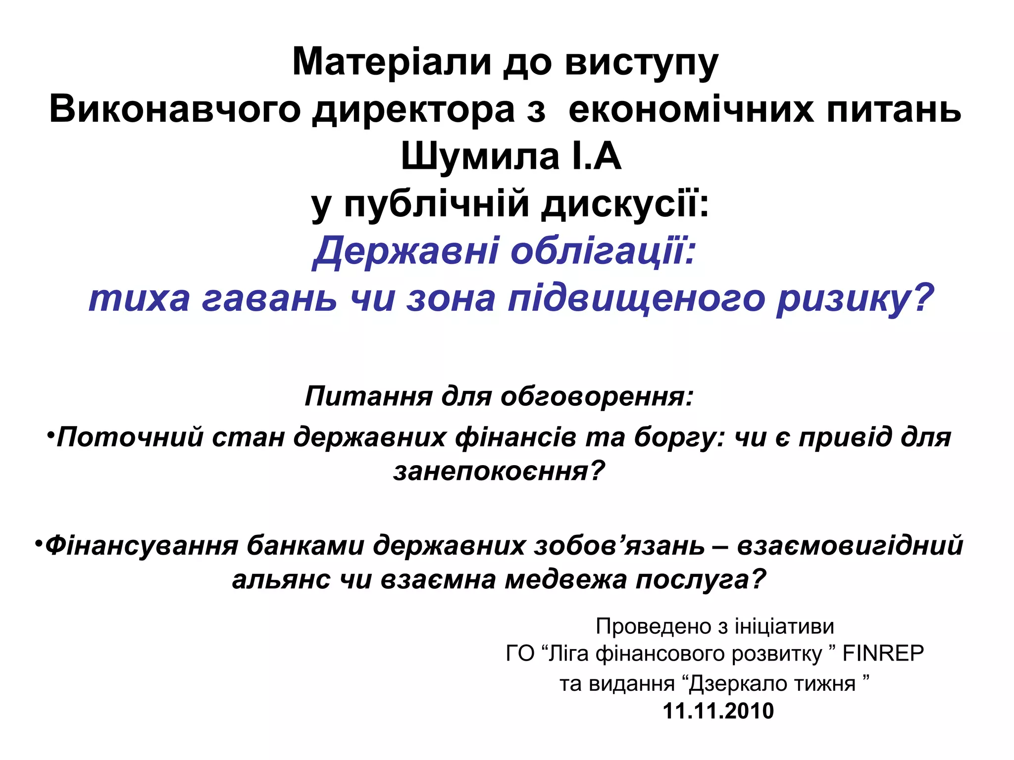Матеріали до виступу виконавчого директора з економічних питань НБУ І.Шумила