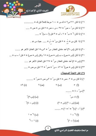 موقع ملزمتي مراجعة جبر للصف الثاني الاعدادي الترم الثاني