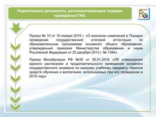 Документ регламентирует порядок проведения государственной итоговой аттестации (ГИА) в 2016 году в г. Ялуторовск, включая даты экзаменов, продолжительность и разрешенные средства на каждом из них. Опубликованы также проекты демоверсий и ресурсы для подготовки учеников к экзаменам. В документе указаны контактные данные ответственных лиц за организацию ГИА.