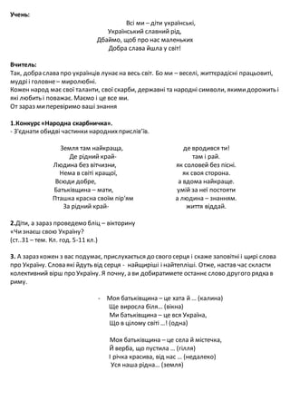 Вчитель: Діти, от ми з вами розпочали і проводимо виховну годину красиво, урочисто,