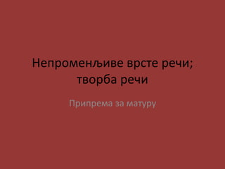 Одреди врсту непроменљивихречи: