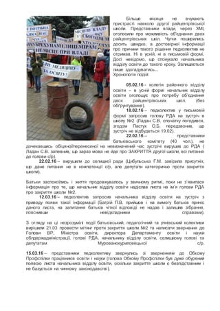 та обґрунтування питання закриття школи. Склалося враження, що голова РДА не