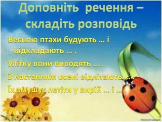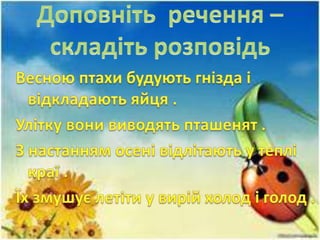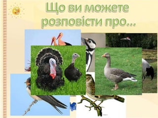 Істотні ознаки птахів Пір’я Крила Дзьо б Ноги