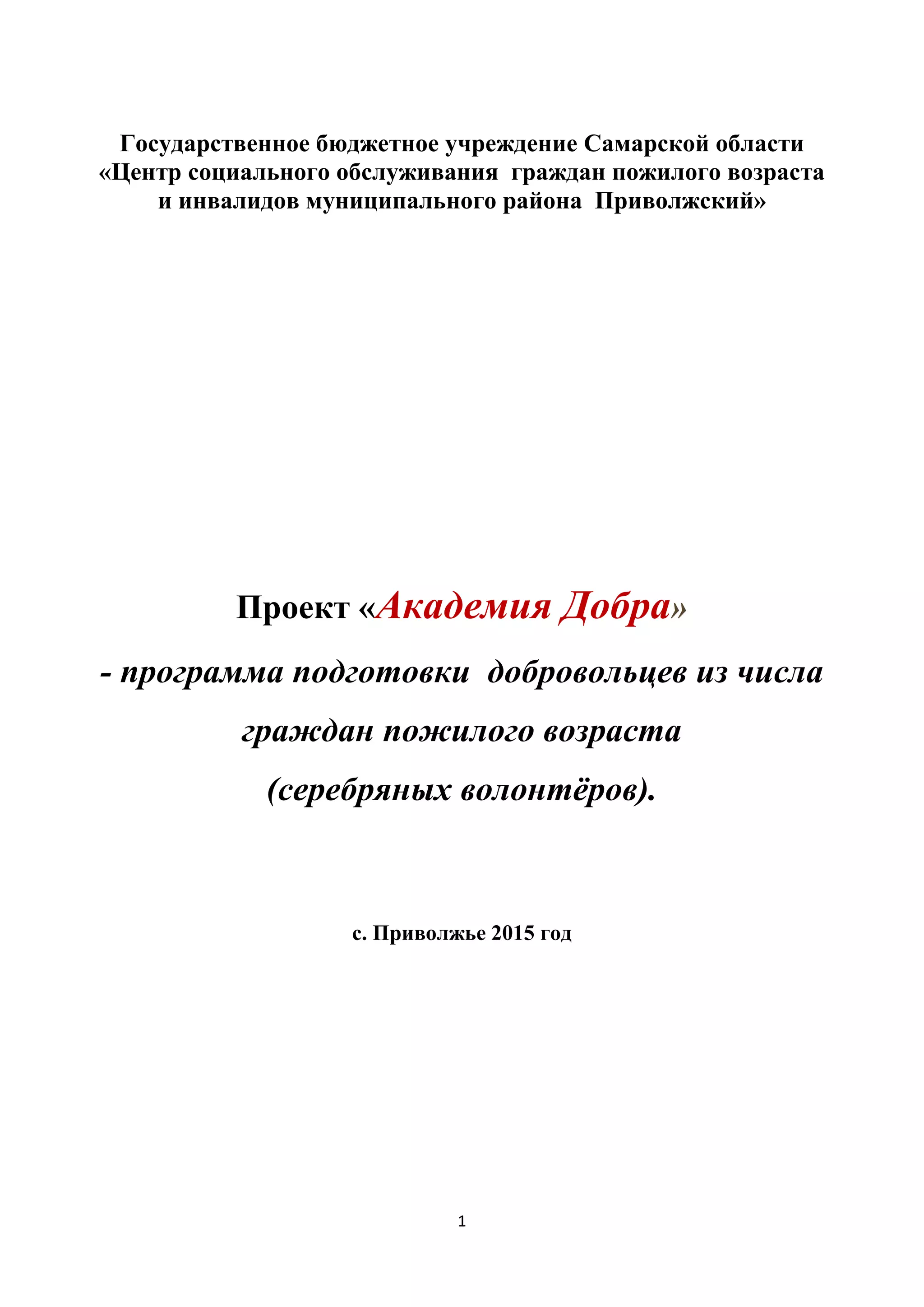 Проект «Академия добра» направлен на подготовку добровольцев из числа пожилых людей и включает обучение методам волонтёрской деятельности для помощи нуждающимся. Актуальность проекта связана с необходимостью социальной интеграции пожилых граждан, страдающих от одиночества и изоляции. Ожидается вовлечение большего числа пожилых людей в социальную жизнь и формирование сообщества, способствующего решению социальных проблем.
