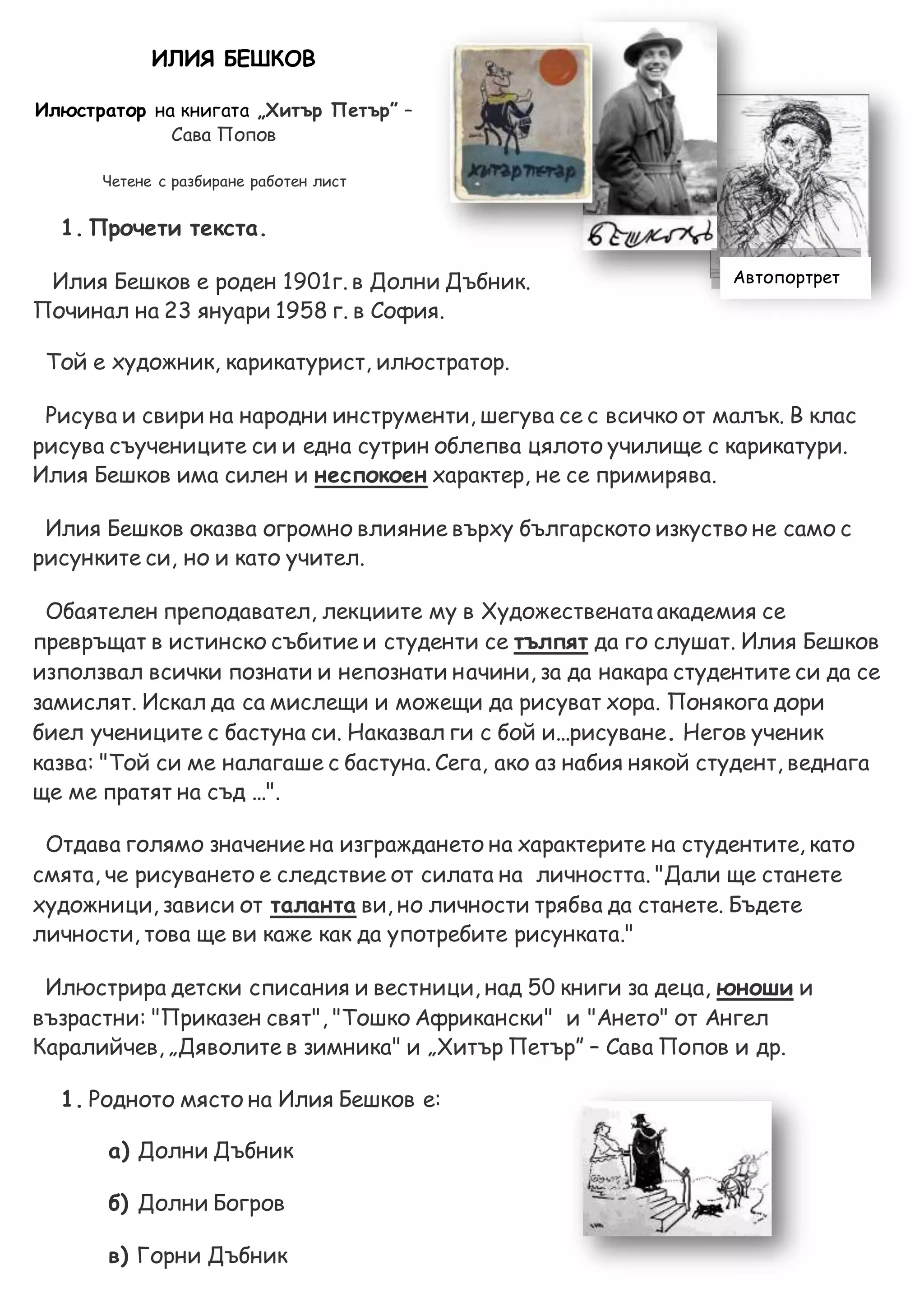 11. Какво илюстрира Илия Бешков?
