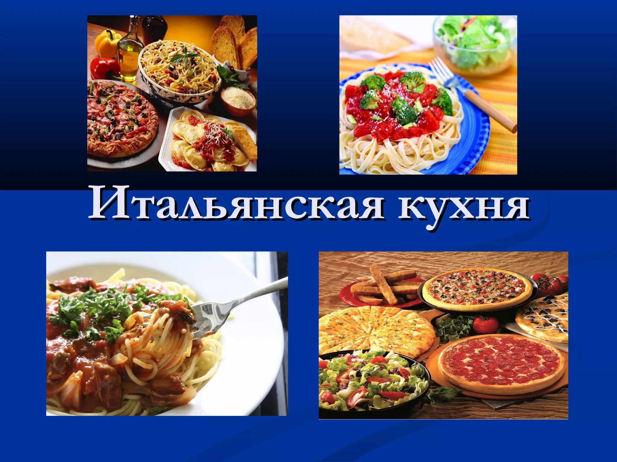 Итальянская кухня представляет собой традиционную кулинарию Италии, популярную благодаря таким блюдам, как пицца и спагетти, и характеризуется разнообразием, отражая различные региональные традиции. Основу кухни составляют свежие продукты Средиземного моря и многовековые кулинарные традиции, сформированные под влиянием различных культур. Популярные блюда включают пиццу, ризотто, лазанью и пасту, а также разнообразные напитки, такие как итальянское вино и кофе.