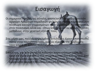 Οι σημερινοί Άραβες,ως σύνολο, αποτελούν την μείξη αρκετών