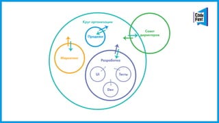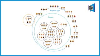 Документ описывает внедрение холакратии в организацию, акцентируя внимание на необходимости изменения мышления сотрудников и делегирования полномочий. Упоминаются ключевые этапы процесса, такие как создание кругов и назначение ролей, а также важность метрик для оценки эффективности работы. Кроме того, подчеркиваются трудности на пути к самостоятельности и ответственности сотрудников.